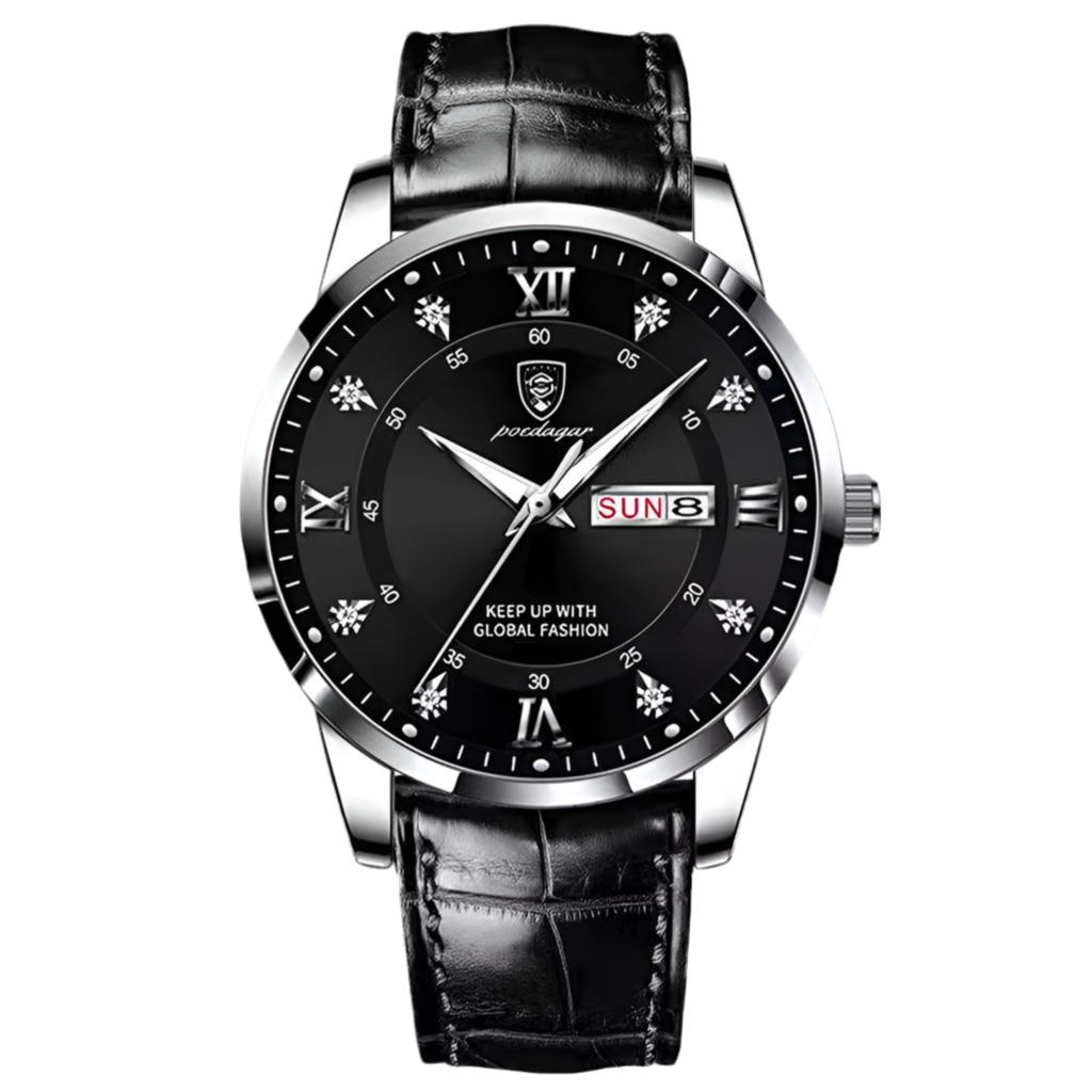 Montre Homme Élégante Poedagar – Cuir Noir & Cadran Classique